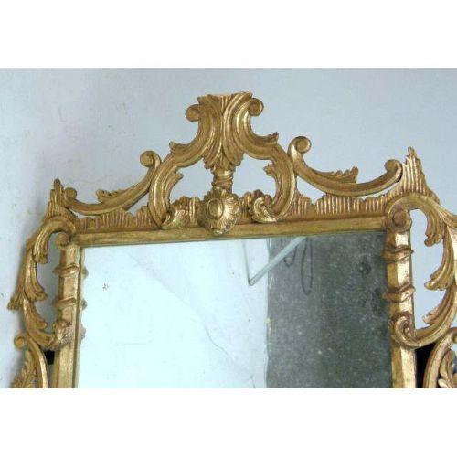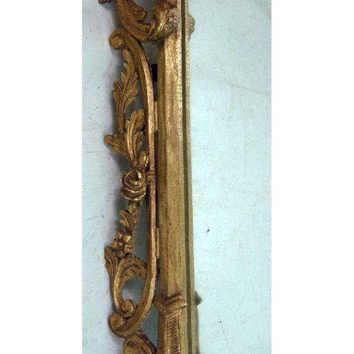 A GEORGE II-STYLE CARVED GILTWOOD LOOKING GLASS<BR><BR>Losses and repairs, approximately 4`h x 32"w