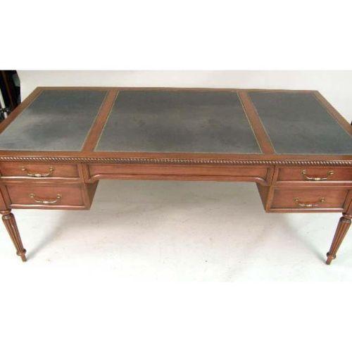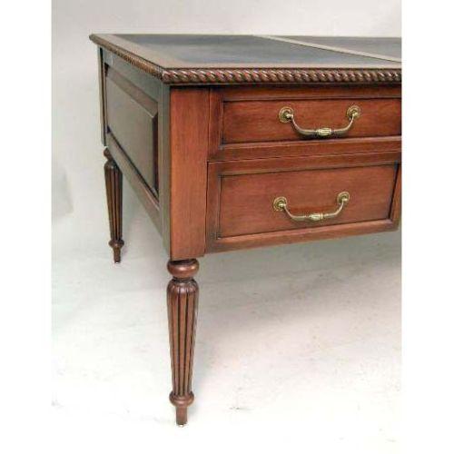 A GEORGE II STYLE MAHOGANY WRITING DESK<BR><BR>With green leather inlaid writing surface, 30-1/2"h x 75-1/2"w x 35"d