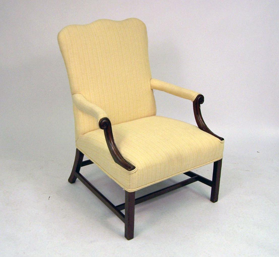 A GEORGE III CARVED LIBRARY CHAIR
