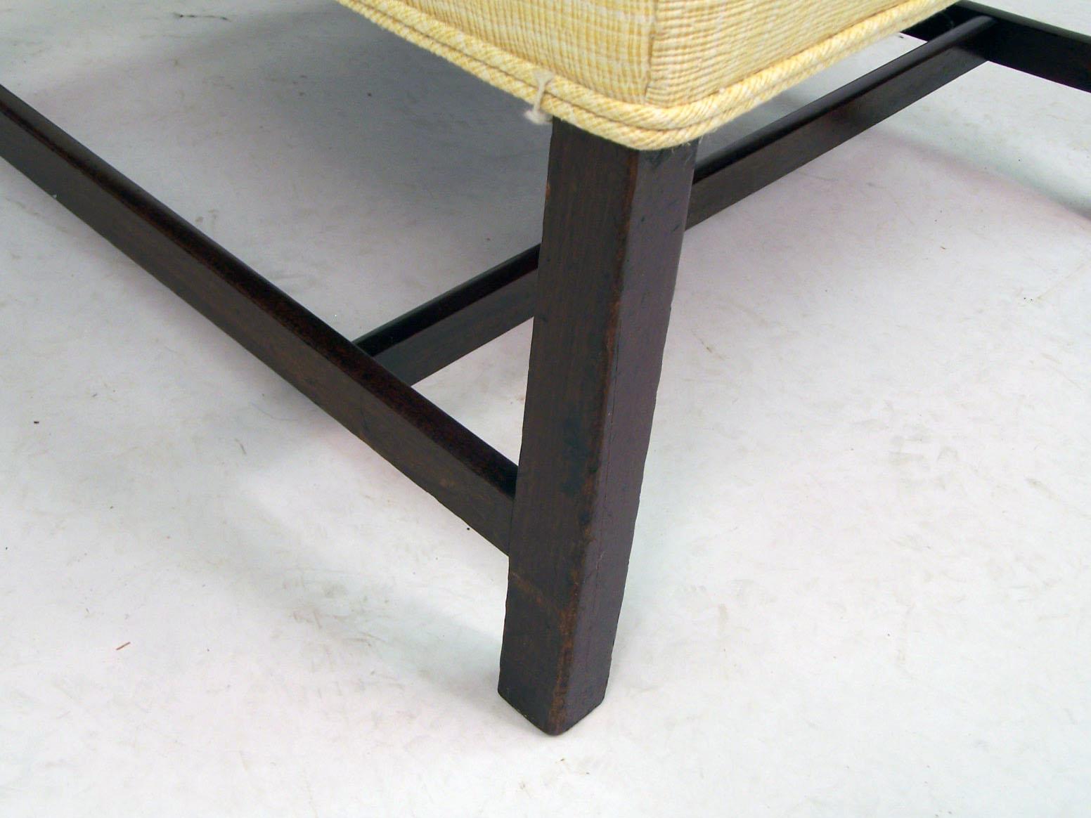Of ample width. 40 1/2"h Wear and nicks to legs commensurate with age, the left arm with crack running from arm into terminal.