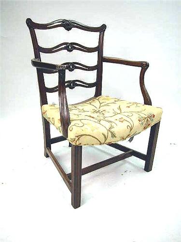 A GEORGE III CARVED MAHOGANY LADDER BACK DINING CHAIR WITH SADDLE SEAT; English
