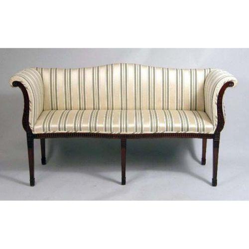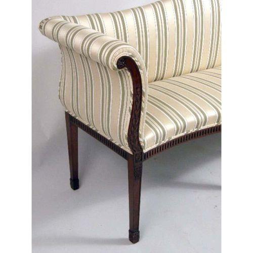 A GEORGE III CARVED MAHOGANY SERPENTINE FRONT CAMELBACK SETTEE<BR><BR>English, 5`2"l