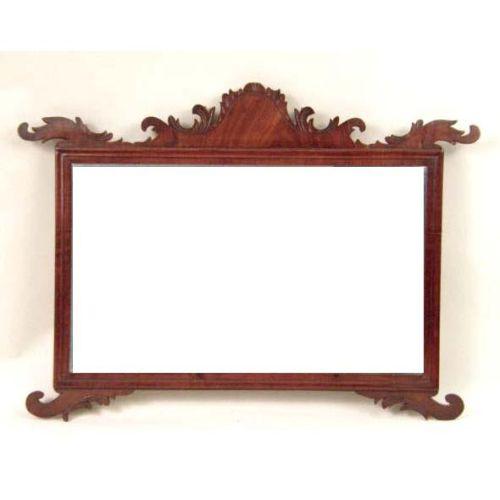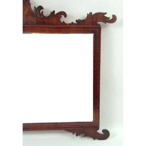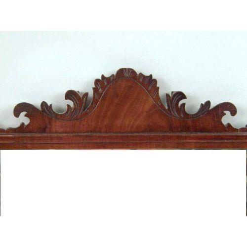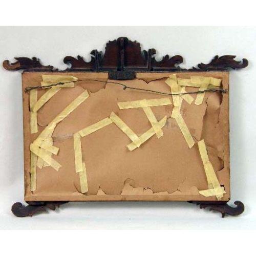 A GEORGE III INCISED MAHOGANY OVERMANTLE MIRROR<BR><BR>English, replacements to ears, 19"h x 24"w