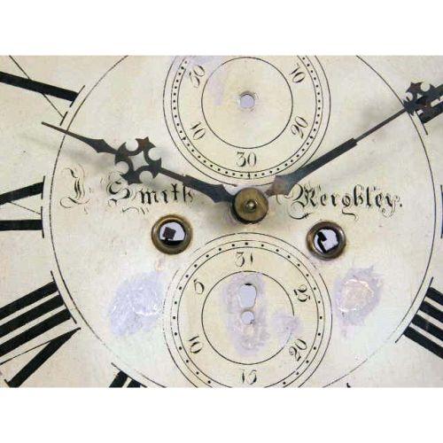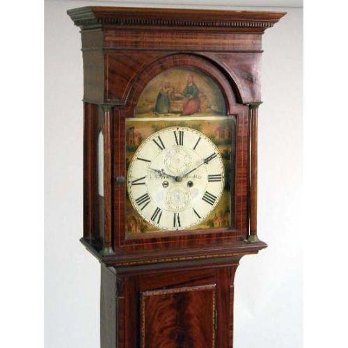 A GEORGE III INLAID MAHOGANY TALL CASE CLOCK<BR><BR>English, the dial signed "J. Smith/Berckley" electrified, repairs, losses, 6`10"h x 22-1/2"w x 10-1/2"d