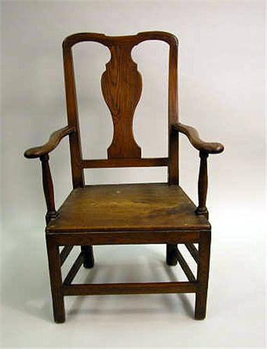 A GEORGE III OAK PLANK SEAT ARMCHAIR; Restorations 39 3/4"h