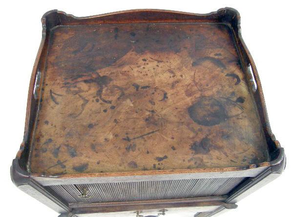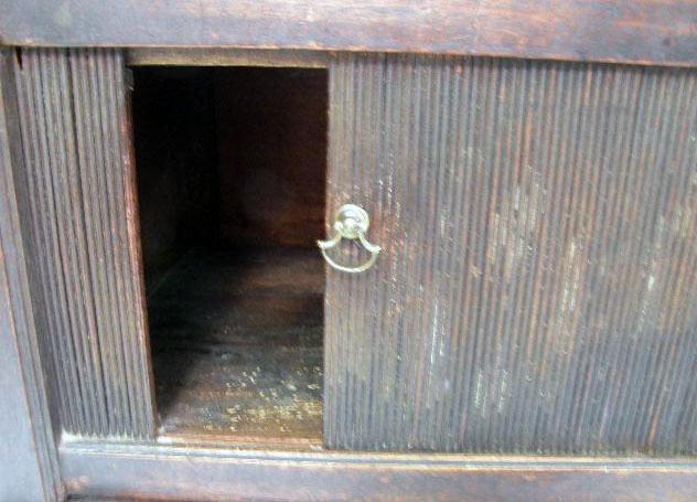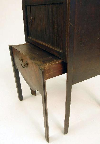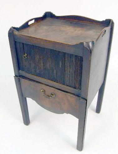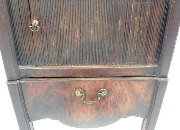 With a tambour sliding door. 32"h x 20 1/2"w x 17 1/2"d Formerly fitted with a potty, wear to surface.