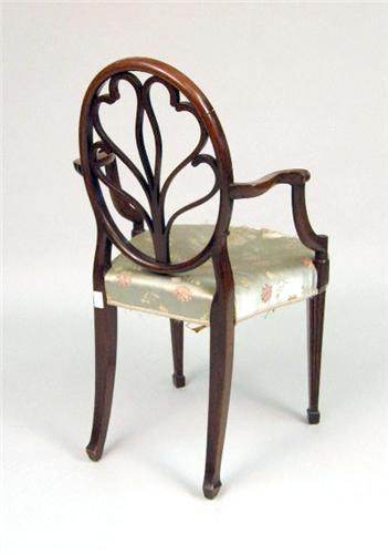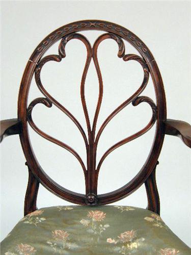 37 1/4"h x 22"w x 20"d Loose elements in splat, wear to upholstery.