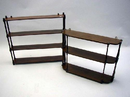 A GEORGE III STYLE MAHOGANY HANGING WALL SHELF; Together with a similar hanging what not shelf