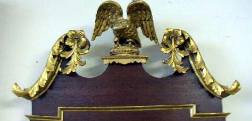 A GEORGE III STYLE PARCEL GILT MAHOGANY CONSTITUTION MIRROR; In the English tradition, of typical form 4' x 24"w, minor repairs