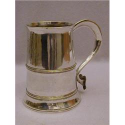 A GEORGE III TANKARD, moulded collet skirt, raised central girdle, C scroll handle, heart heel piece contemporary 'FJR' monogram, maker John Denzilow, London 1784, (approximately 20oz) £600-700