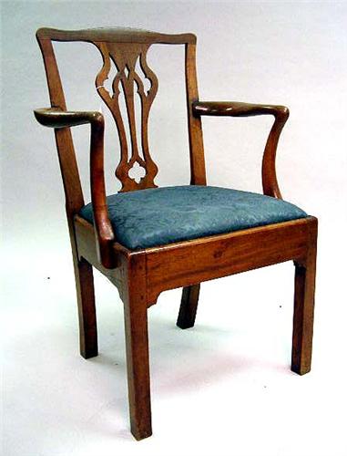 A GEORGE III WALNUT ARMCHAIR English, cracks, wea
