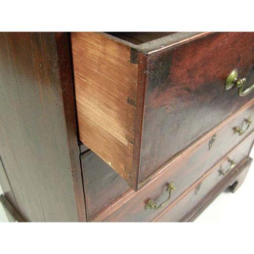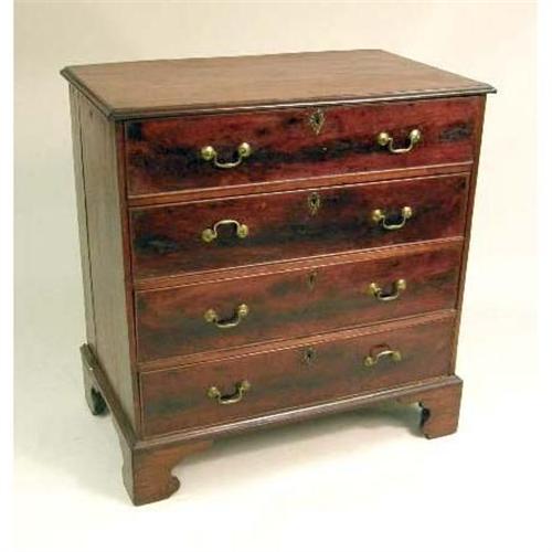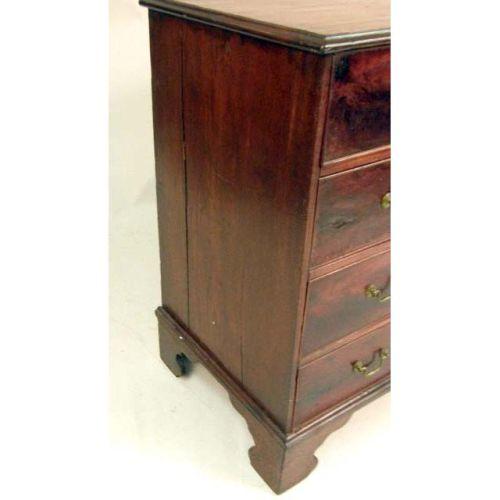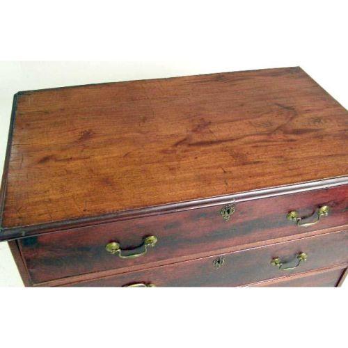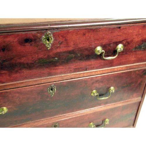 A GEORGE III WALNUT CHEST OF DRAWERS<BR><BR>English, brasses replaced, repairs to feet and top. 38" h x 37" w x 21 1/2" d.