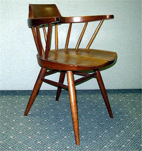 A GEORGE NAKASHIMA CHERRYWOOD ARMCHAIR; Barrel back, saddle seat on flaring dowel legs, 28" x 24-1/2" x 19-1/2"