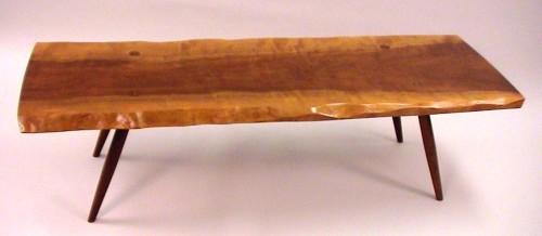 A GEORGE NAKASHIMA CHERRYWOOD COFFEE TABLE/ BENCH ON FOUR LEGS; With original receipt dated May 27, 1963, slab top, 16"h x 54"w x 17-1/2"d