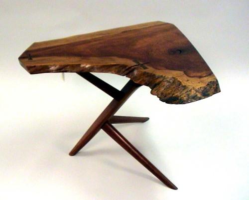 A GEORGE NAKASHIMA CHERRYWOOD CONOID END TABLE; With drawing and original receipt dated May 24,1965, with free-edge top and single rosewood butterfly key, on cross-legged base, 20-1/2"h x 31"l x 27"