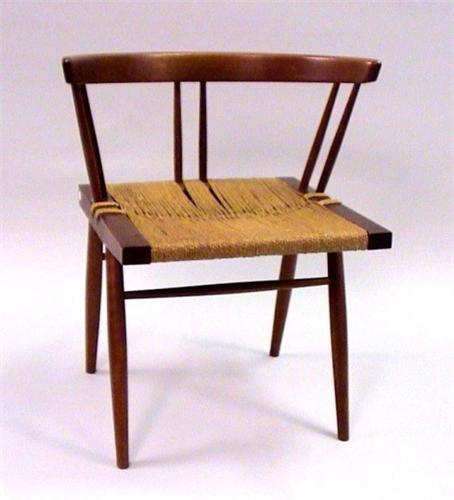 A GEORGE NAKASHIMA CHERRYWOOD LOW-BACK GRASS SEATED CHAIR WITH ROPE SEAT; With original receipt dated August, 28, 1957 26-1/2"h x 18" x 19"