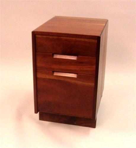 A GEORGE NAKASHIMA CHERRYWOOD THREE-DRAWER PEDESTAL NIGHTSTAND; Circa 1960, 25" x 15 1/4" x 19 1/4"dia.
