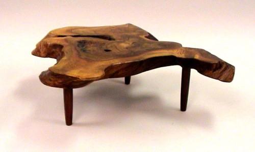 A GEORGE NAKASHIMA ENGLISH WALNUT SMALL FREE FORM STOOL WITH FOUR ROSEWOOD LEGS; With drawing and original receipt dated May 11, 1968, free-form, 7-5/8"h x 24"