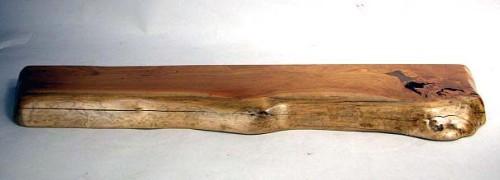 A GEORGE NAKASHIMA STYLE WALNUT HANGING WALL SHELF WITH RECTANGULAR MIRROR; Free-form front edge shelf 24-1/2"l