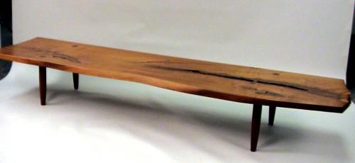 A GEORGE NAKASHIMA WALNUT COFFEE TABLE/BENCH; With original receipt dated September 14,1955, with two butterflies 13"h x 88" x 21-5/8"