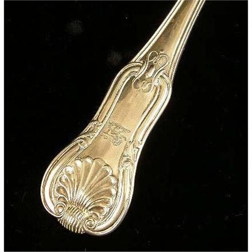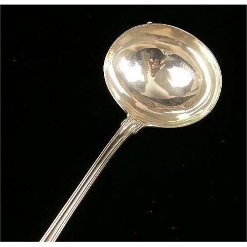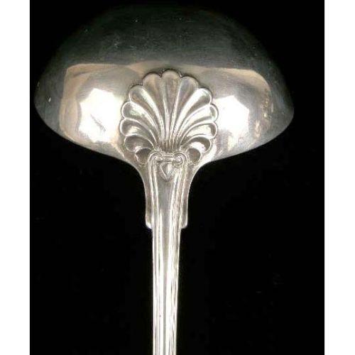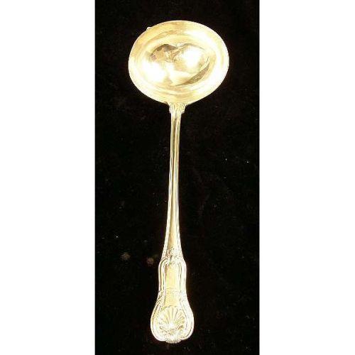 A GEORGIAN ENGLISH SILVER SOUP LADLE<BR><BR>Crested, hallmarked PS (Paul Storr), London, 1817, shell decorated terminal, 13 "long, weight apx. 9 T.O>