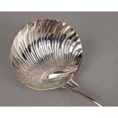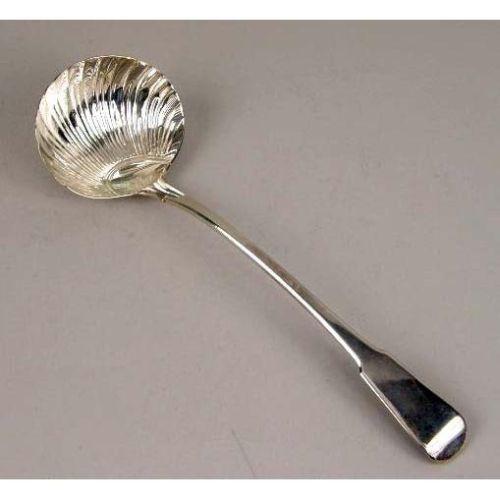 A GEORGIAN STERLING SILVER LADLE<BR><BR>Hallmarked RT, London, 1814, with shell-form bowl and fiddle-back handle, 13"long, weight apx. 7 T.O.