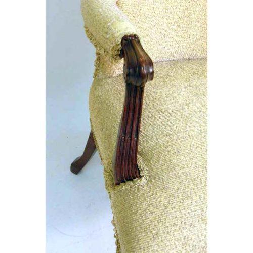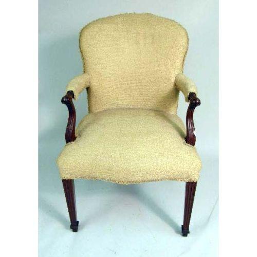 A GEORGIAN STYLE MAHOGANY UPHOLSTERED ARMCHAIR<BR><BR>With cream upholstery