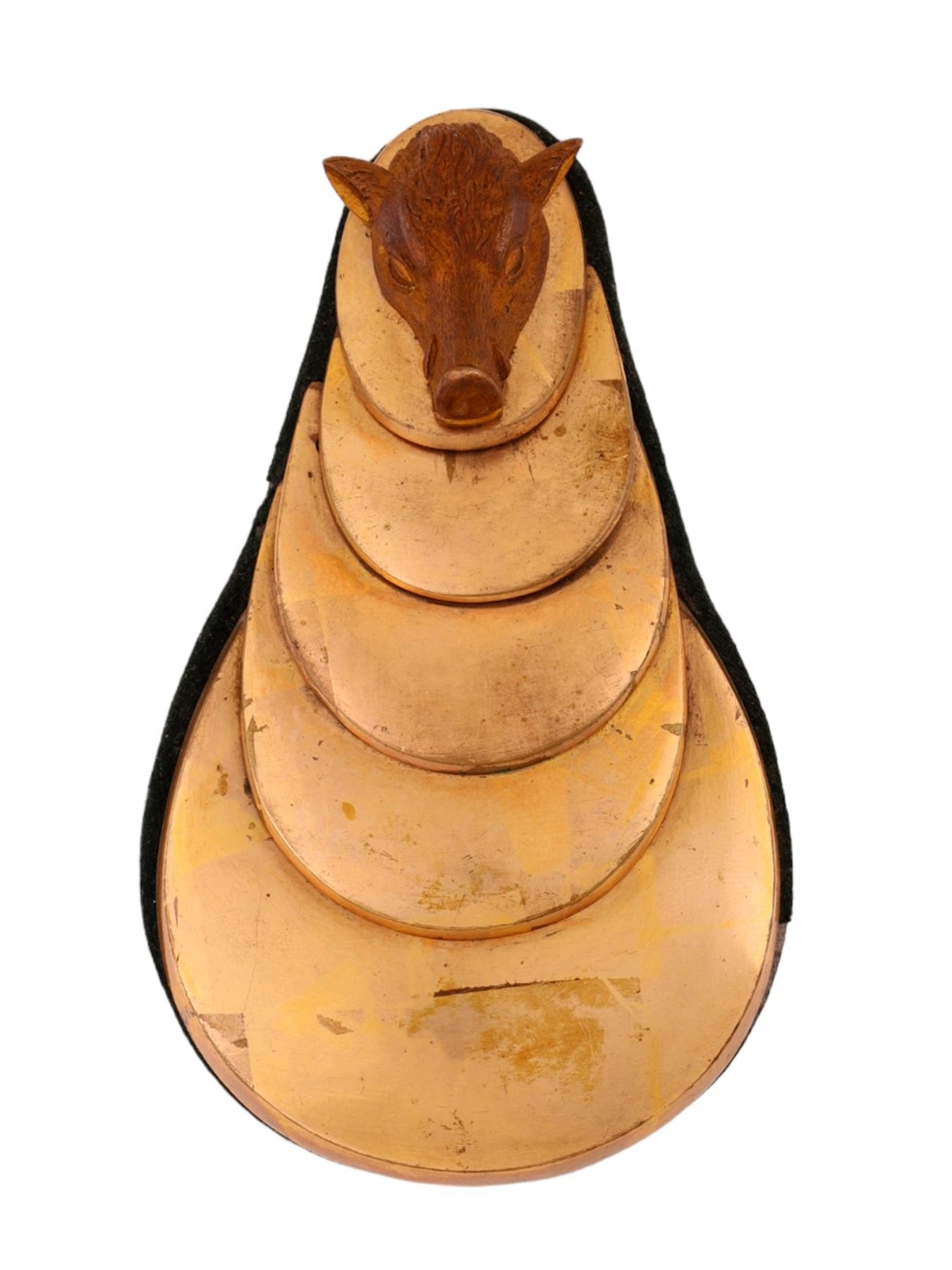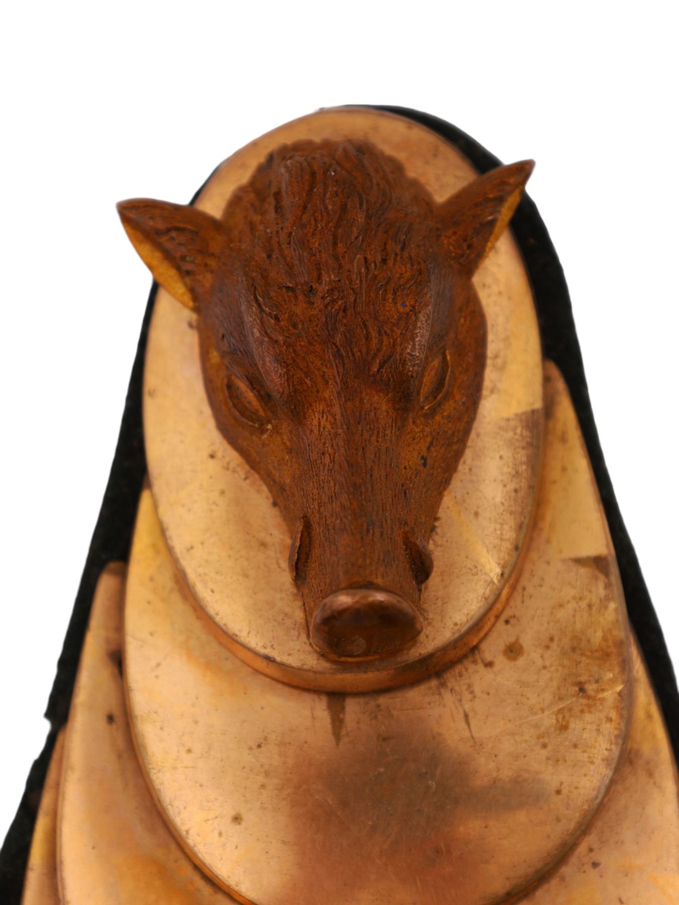An epaulette consisting of gilt bronze decorated with a boar head on the top, exquisitely chased. The badge was issued to High Foresters in Germany. Lined with original dark-green velvet.