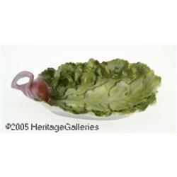 <B>A GERMAN PORCELAIN NAPPY</B></I><BR>Royal Bayreuth, c.1902<BR><BR>The oval form wider at one end and a handle on the other depicting the form of a radish leaf and a radish, the root forming the handle, stamped underside <I>Royal Bayreuth</B></I> <BR>7.6in. long