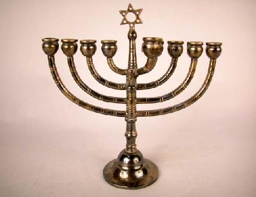 A GERMAN SILVER BRASS MENORAH; 7"h x 7"w