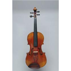 A GERMAN VIOLIN, bearing a Vuillaume label, the two piece back of horizontal narrow figure, the s...