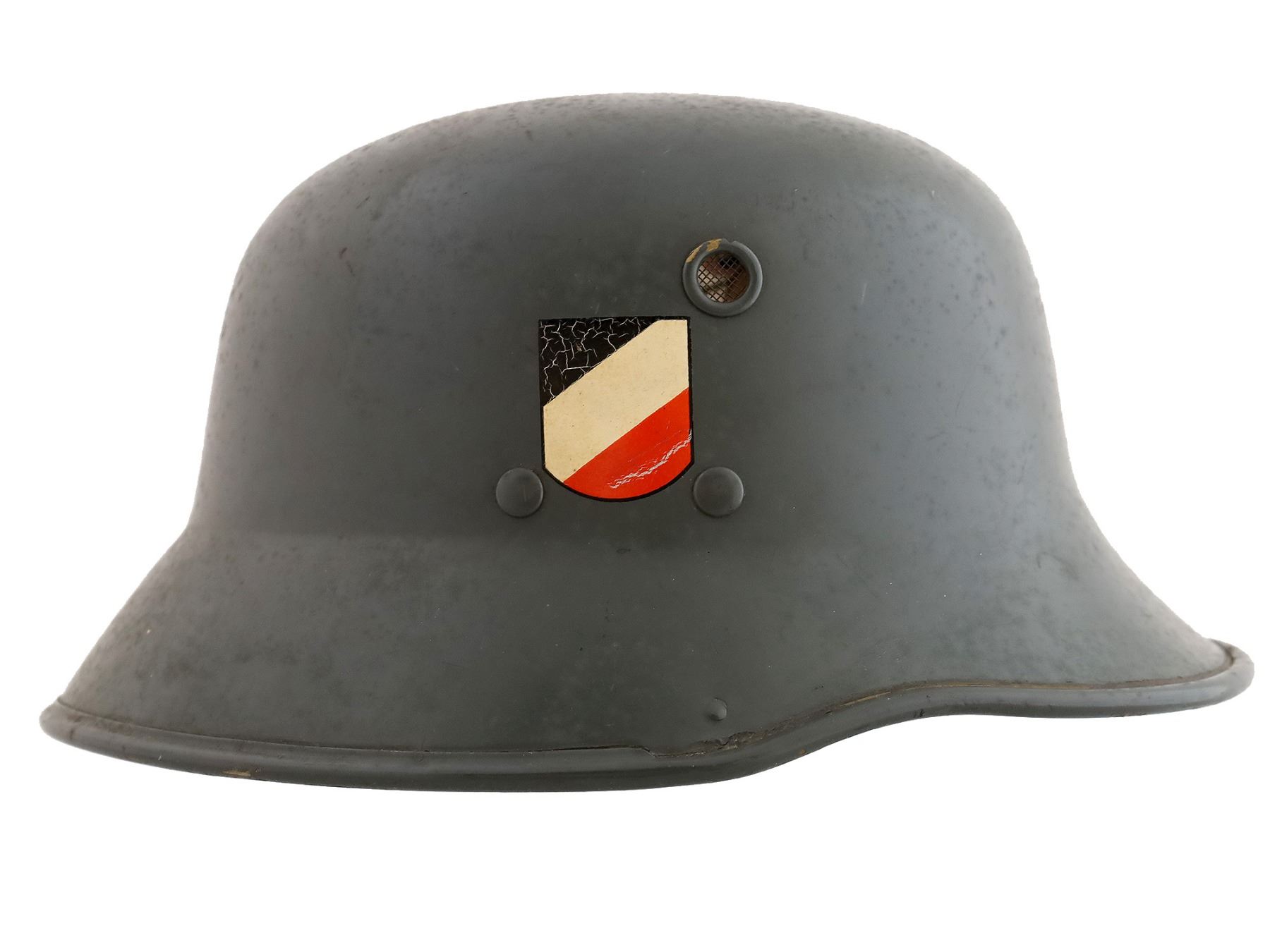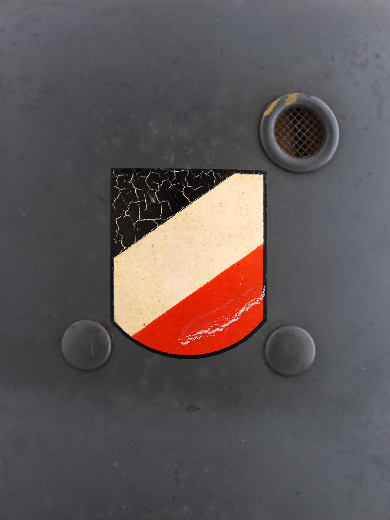 Lightweight. EREL maker (premium). A Parade Dress helmet double-decal was not made during the war so it is rare.