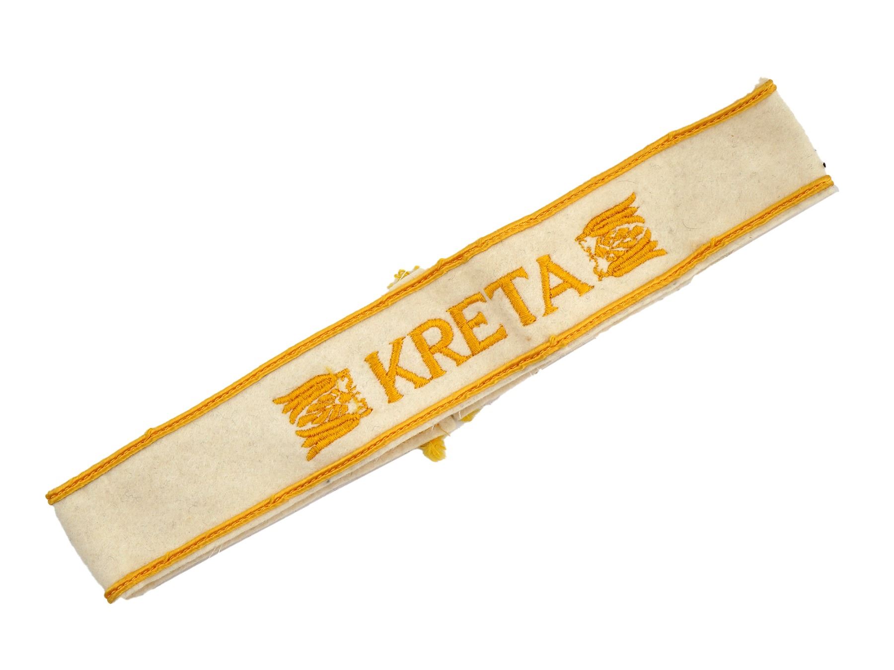 The "Kreta" (Crete) cuff title was introduced on October 16th, 1942, to personnel who took part in the assault on the Greek island of Crete from May 20th to June 1st, 1941.