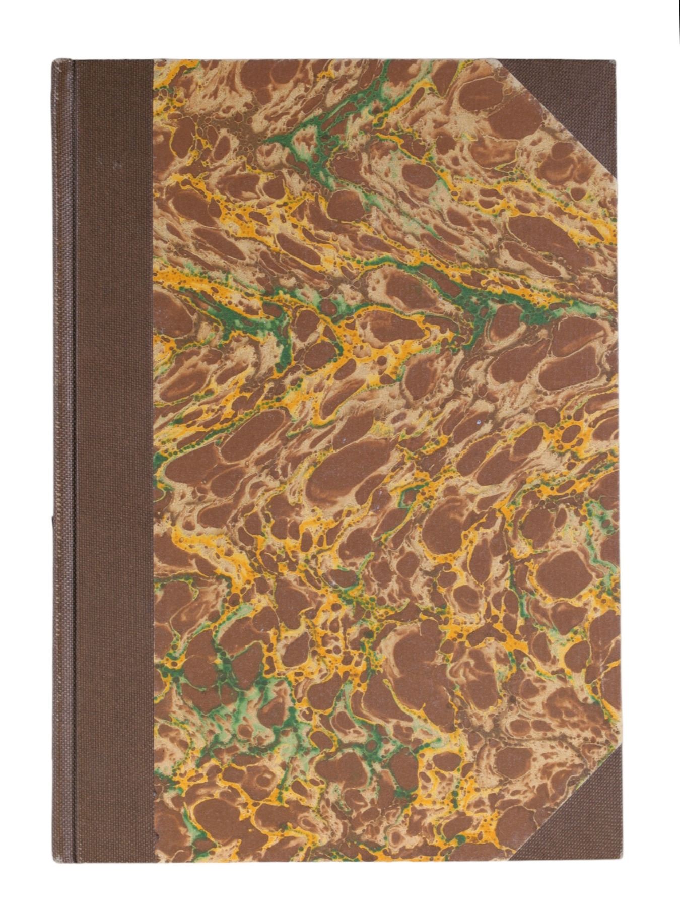 Covers in very good condition with almost no wear. Small tears to paper near to binding inside front cover. Binding itself tight and pliable. Papers foxed and yellowed consistently with age and type of paper.