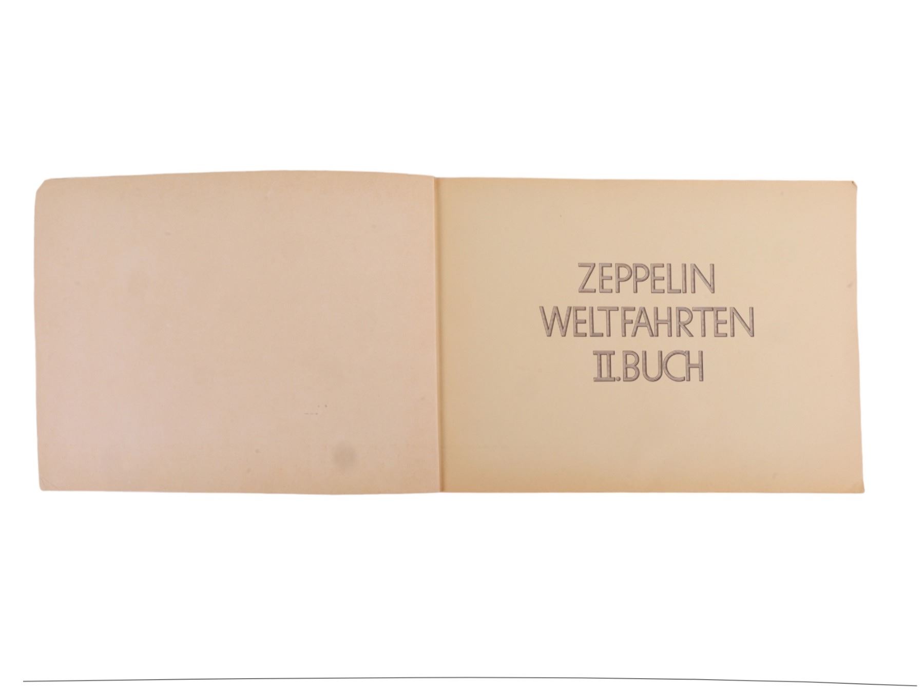 A collection of German cigarette cards title 'Zeppelin-Weltfarhten, II. Buch', published in 1933. This is the second of 3 volumes that were published in the 1930s. This volume includes the coveted golden card at the beginning of the book.