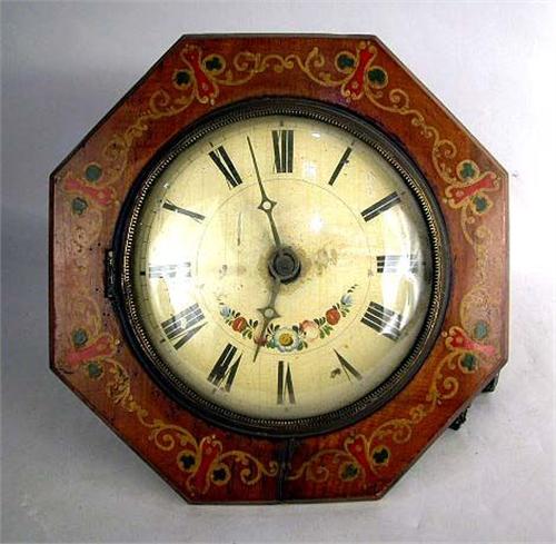 A GILT AND STENCIL-DECORATED OCTAGONAL FORM WALL CLOCK;