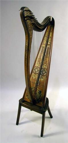 A GILT CLAD IVY STENCIL DECORATED HARP; 52" x 27"