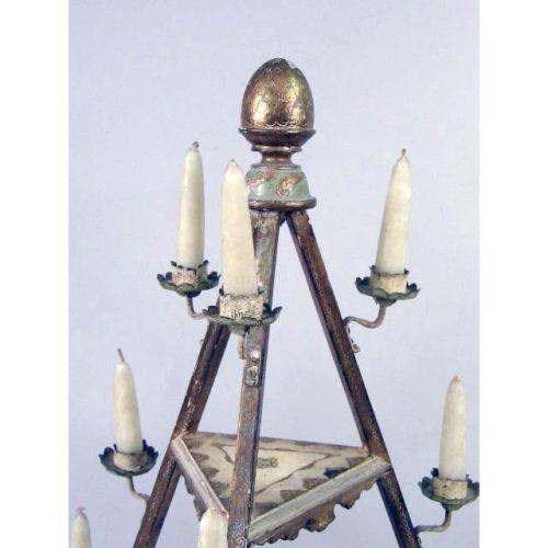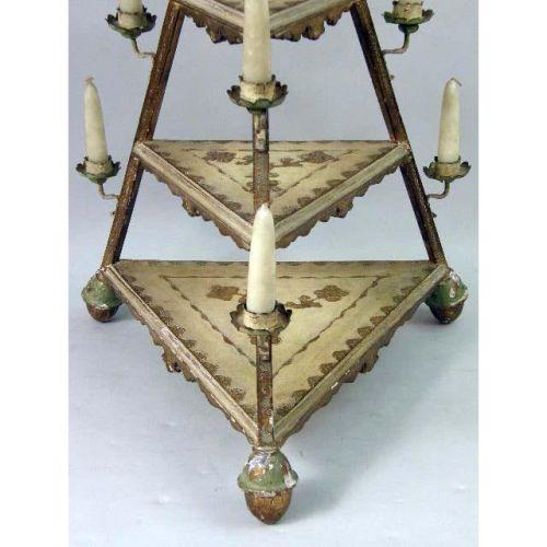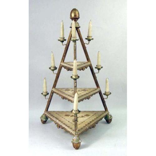 A GILTWOOD GRADUATED THREE TIER TRIANGULAR CANDLEHOLDER<BR><BR>28"h