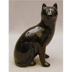 A GLAZED POTTERY MODEL OF A SEATED CAT, with glass eyes, height 15cm £20-30