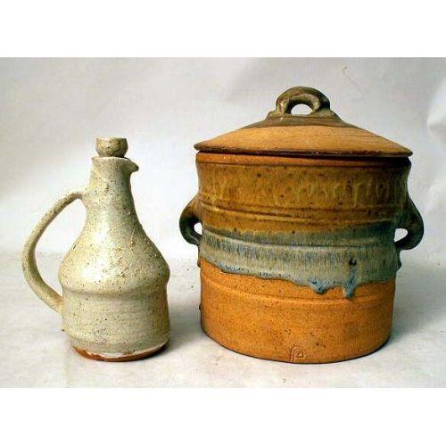 A GLAZED REDWARE STOPPERED DECANTER<BR><BR>The underside incised "PZ", 7 3/4"h