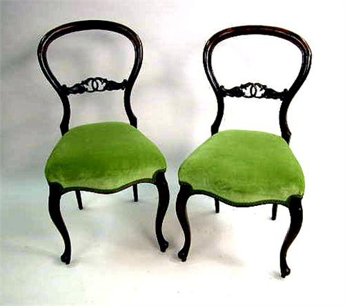 A GOOD SET OF FOUR VICTORIAN CARVED ROSEWOOD BALLOON BACK SIDE CHAIRS; English, some repairs
