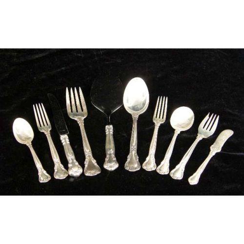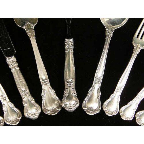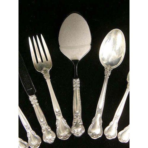 A GORHAM "CHANTILLY" PATTERN STERLING SILVER PARTIAL FLATWARE SERVICE<BR><BR>Comprising 8 luncheon knives and 7 luncheon forks, 8 salad forks, 8 cream soup spoons, 16 teaspoons, a salad serving spoon & fork, 1 dinner fork, a flat server and 6 flat-handled butter spreaders, total weight apx. 56 T.O. weighable