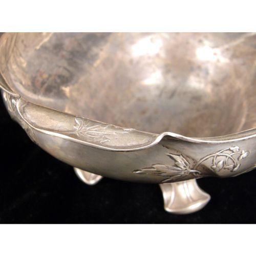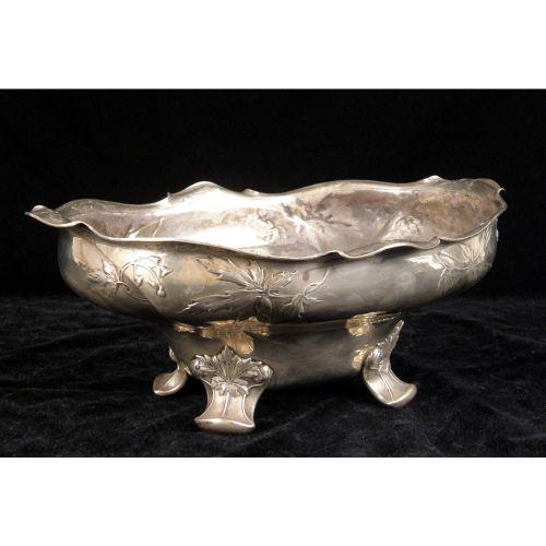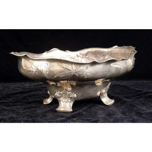 A GORHAM MARTELE OVAL FOOTED CENTERPIECE BOWL<BR><BR>#9584 ATK, leaf decorated, 11"long, weight apx. 27 T.O.