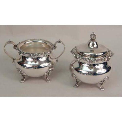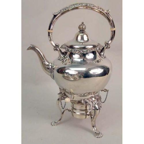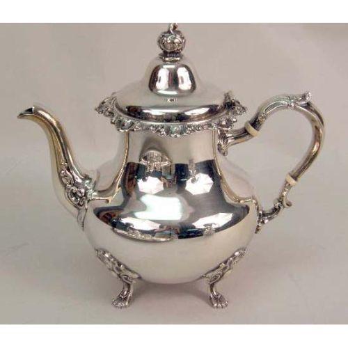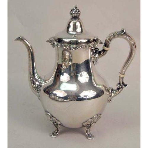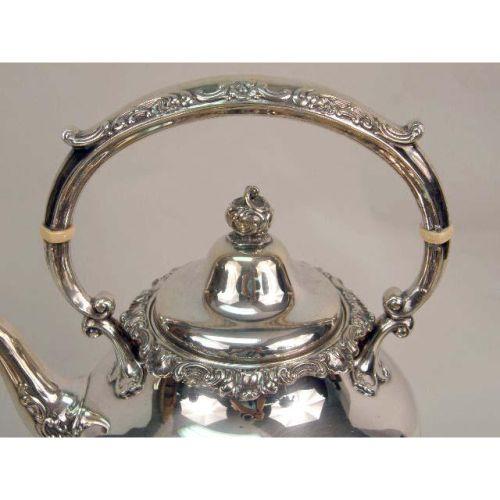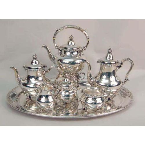 A GORHAM SIX PIECE STERLING SILVER TEA SERVICE WITH TRAY<BR><BR>Comprising a kettle on stand, a coffee pot, 9-3/4"high, a teapot, a covered sugar bowl. a cream jug and a waste bowl, tray with inset handles, 22"long, weight apx. 180 T.O.