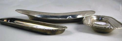 A GORHAM STERLING SILVER BREAD TRAY AND PEN TRAY WITH AN ENGLISH SILVER PEN TRAY; 10 7/8"l, 9"l, 8 1/2"l