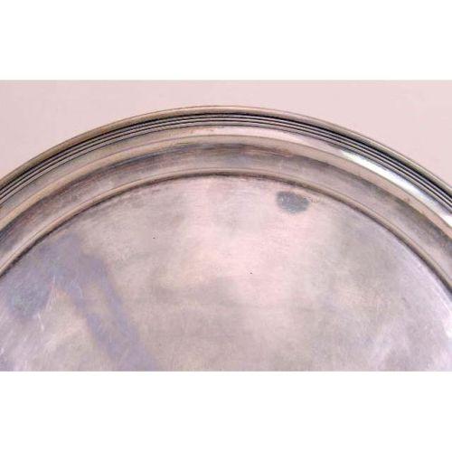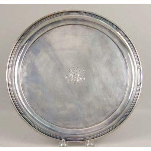 A GORHAM STERLING SILVER CIRCULAR TRAY<BR><BR>3A10004, monogrammed, with molded border, 12" diameter, weight apx. 17 T.O.