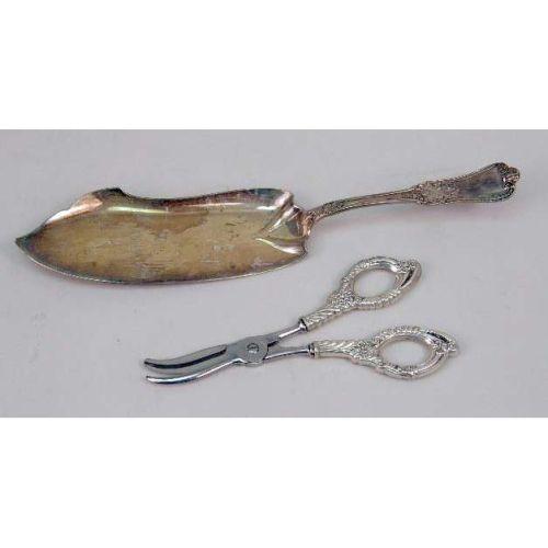 A GORHAM STERLING SILVER CRUMBER<BR><BR>11-1/2"long, weight apx. 3 T.O., together with sterling silver handled grape shears.
