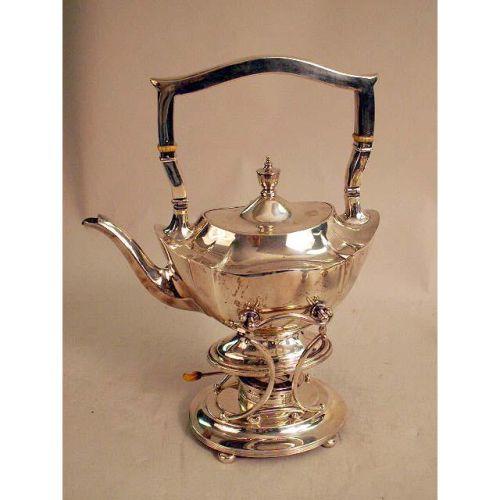 A GORHAM STERLING SILVER FOUR-PIECE TEA SERVICE<BR><BR>Comprising a kettle on stand, teapot, cream jug and open sugar basket, all monogrammed, kettle 14"h, weight apx. 65 T.O.