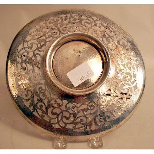 A GORHAM STERLING SILVER HAND HAMMERED HANDLED CIRCULAR TRAY<BR><BR>9-1/2"dia., weight apx. 11 T.O.