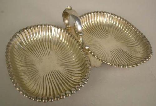 A GORHAM STERLING SILVER HANDLED FLUTED FORM BON-BON DISH; With two compartments, #127, retailed by Bailey, Banks & Biddle, 8"l, apx. 6 T.O.